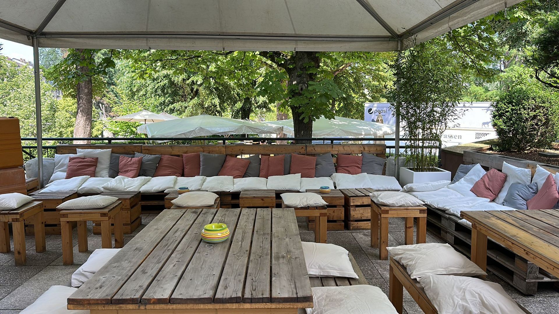 Eine große Bar und schattige Plätzchen auch an den heißesten Tagen