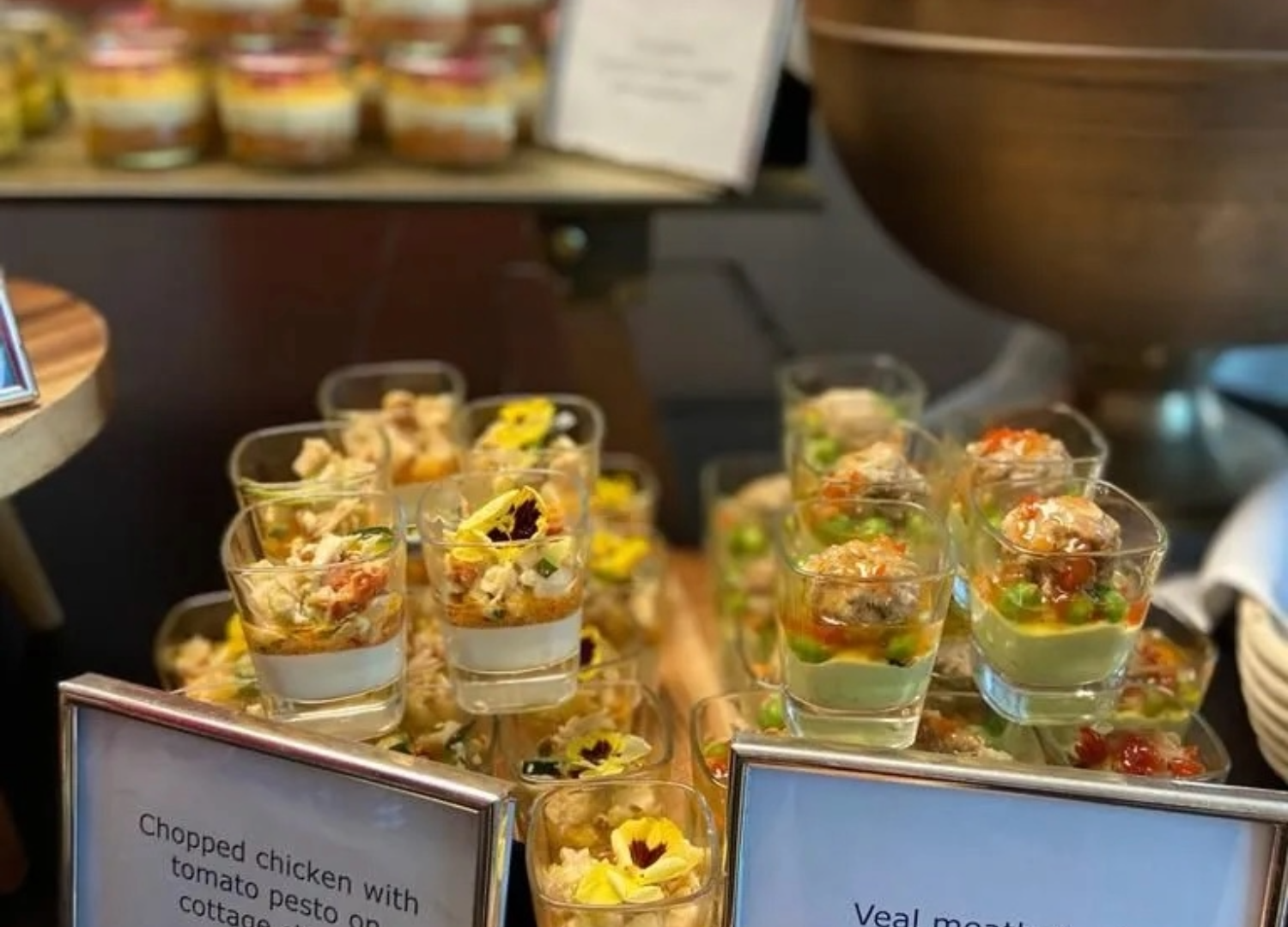Mit der Erfahrung als Gastgeber präsentieren wir individuelle und kreative Speisen aus jeder Kategorie, z. B. als Fingerfood im Glas, am Stiel, zum Dippen, zum Löffeln oder aus der Hand oder auf dem Teller. Wir kreieren und präsentieren die Buffets oder Menüs aus der Sicht des Gastgebers. Sorgfältig und liebevoll, als wäre es ein kulinarisches Erlebnis für uns selbst.